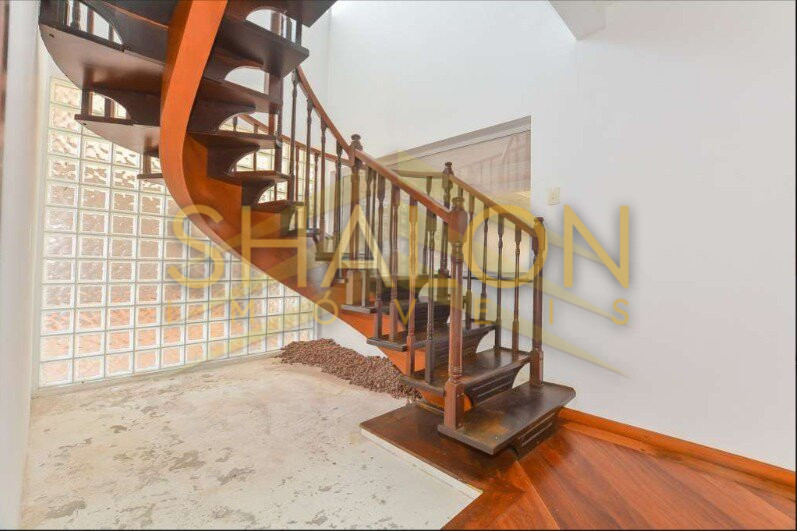 A escada em madeira, integrada a um charmoso jardim de inverno, é um verdadeiro destaque do imóvel — luz natural, sofisticação e uma sensação única de acolhimento logo ao entrar.
